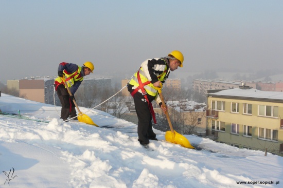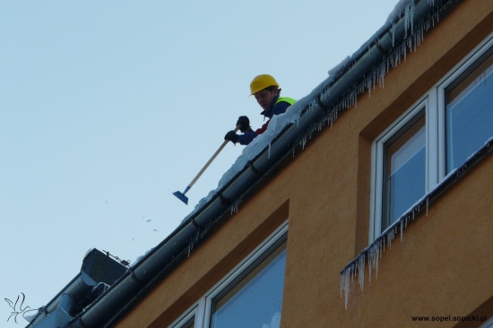 Odśnieżanie dachów, zbijanie, usuwanie sopli i nawisów śnieżnych.