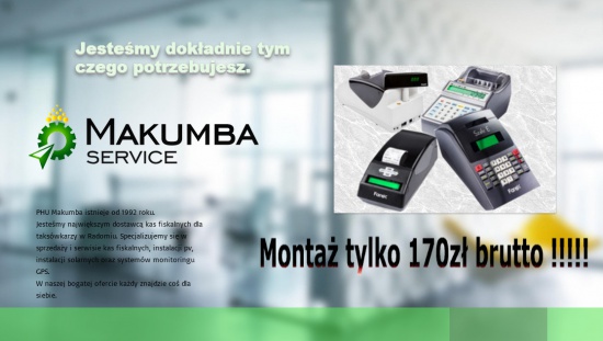 PHU Makumba istnieje od 1992 roku.Jesteśmy największym dostawcą kas fiskalnych dla taksówkarzy w Radomiu.