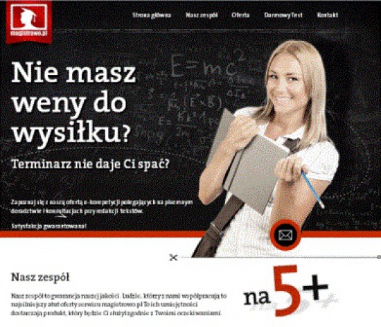 Jeśli Twój czas  nieubłaganie upływa, zdecyduj się na naszą ofertę. Pomagamy studentom w pisaniu prac magisterskich i licencjackich ze wszystkich dziedzin, także w językach obcych (angielski, niemiecki, rosyjski, hiszpański, włoski, francuski). Zapewniamy: badanie antyplagiatowe, niską zaliczkę, płatność w ratach, bezpłatne poprawki błędów. Na życzenie podpisujemy umowę. Nie polegaj na obietnicach – skorzystaj z pewnej gwarancji . Zapraszamy. (skorzystaj z formularza) numer telefonu 665-229-151