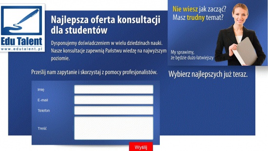 Zapraszamy do nas. Realizujemy zlecenia z wielu dziedzin (pedagogika, resocjalizacja, psychologia, marketing, zarządzanie, logistyka, zarządzanie zasobami ludzkimi, stosunki międzynarodowe, politologia, dziennikarstwo, filologia polska, filologia angielska, germanistyka, filologia rosyjska, filologia romańska, prawo, fizjoterapia i rehabilitacja, bankowość, finanse, rachunkowość, ekonomia, samorząd terytorialny, administracja, socjologia). Numer telefonu: (22) 494-31-48