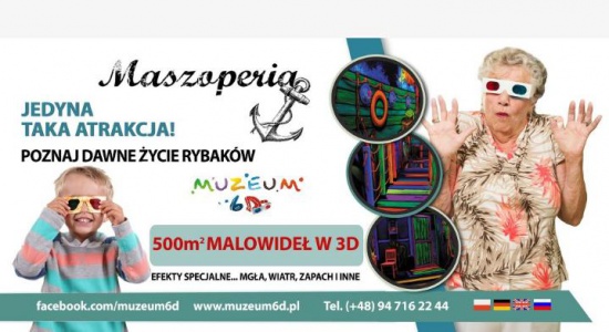 Muzeum 6d - Maszoperia, to całoroczna atrakcja przygotowana z myślą o turystach, którzy postanowili spędzić czas nad Bałtykiem. Miejsce powstało z potrzeby upamiętnienia życia i pracy nadbałtyckich rybaków i jest wyjątkowe nie tylko dlatego, że nie ma w nim kustosza i kapci nie do pary, ale ze względu na to, że wszystkie eksponaty można śmiało dotykać i głośno wymieniać się wrażeniami.