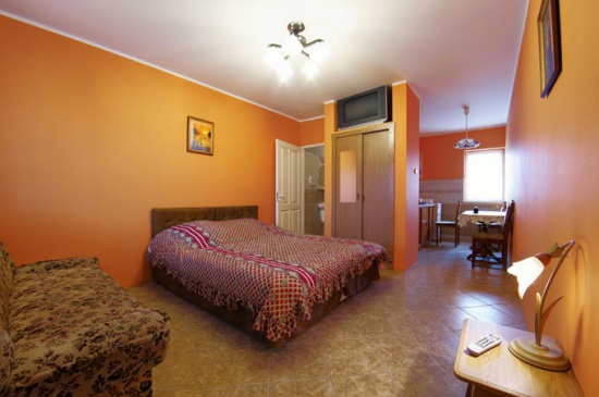 W każdym pokoju znajduje się pościel, łazienka, aneks kuchenny (lodówka, kuchenka, czajnik, garnki, niezbędne naczynia) , TV kablowa, możliwość połączenia z Internetem.