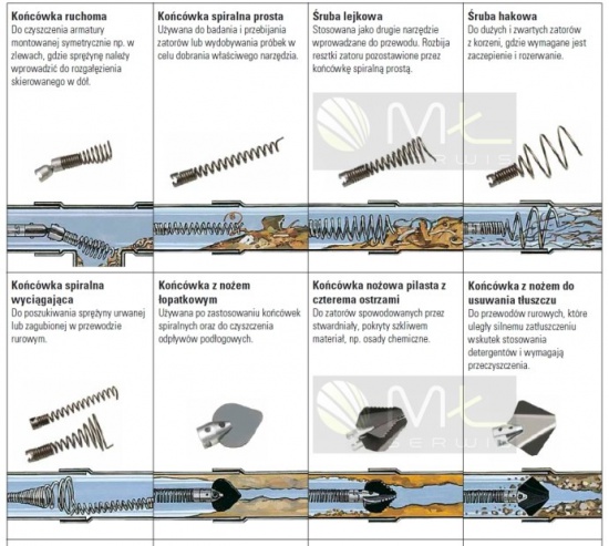 Profesjonalne przepychanie udrażnianie sprężyną mechaniczną z wymiennymi końcówkami