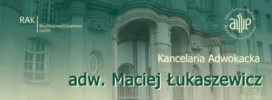 Kancelaria adwokacka Macieja Łukaszewicza świadczy porady prawne oraz profesjonalną reprezentację przed sądami i innymi organami Polski , Niemiec i innych krajów Unii Europejskiej.