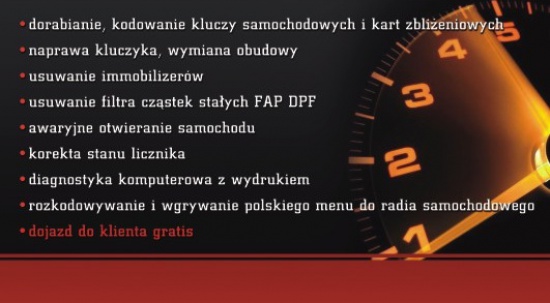 Zgubiłeś kluczyk samochodowy, zatrzasnął Ci się samochód, twoje radio prosi Kod, potrzebujesz naprawić kluczyk lub wymienić obudowę albo zakodować kluczyk a może dorobić drugi zapasowy, zadzwoń do Nas!!! Jesteśmy dla Twoich usług, **** w każdej sytuacji.Wykonujemy również inne usługi, odwiedź naszą stronę a dowiesz się więcej.Działamy na terenie Kolbuszowej i okolic.ZAPRASZAMY!!!