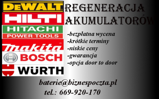 Regeneracja baterii , do wkrętarek akumulatorowych wszystkich marek.
