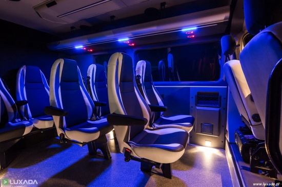 Busy LUXADA z grupy Traffic i Vivaro wyposażone są w tablety, lub zagłówki multimedialne (monitory LCD), pozwalające oglądać filmy podczas przejazdu!!! Każdy pasażer ma do dyspozycji słuchawki, dzięki czemu osoby oglądające film nie przeszkadzają pasażerom śpiącym podczas jazdy. W pojazdach typu Master do dyspozycji mają Państwo duży telewizor, a wnętrze wykończone jest na styl kina domowego.