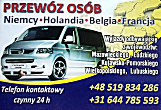Regularny przewóz osób do Niemiec, Belgi, Holandii.