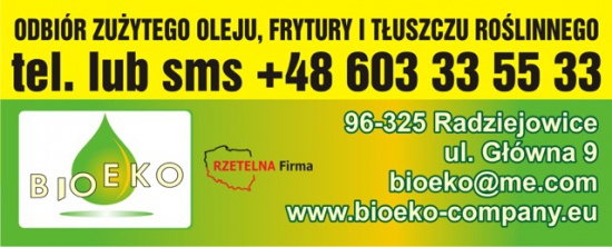 Jesteśmy specjalistyczną firmą zajmującą się odbiorem zużytego oleju spożywczego i tłuszczy oraz ich transportem, magazynowaniem i zagospodarowaniem. Dla Państwa wygody zuzyte tłuszcze odbieramy "na telefon" zapewniając naszym klientom czyste i praktyczne pojemniki. Wystawiamy niezbędny dokument - kartę przekazu odpadu, która jest potwierdzeniem dla Senapidu o zdaniu zużytego tłuszczu bądź oleju. Nasza firma posiada stosowne zezwolenia.